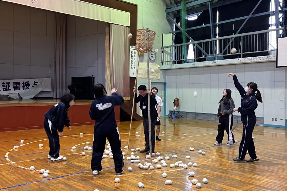 実際に玉入れをやり楽しみつつも、適正な競技時間を考え、借り人・障害物競争をやってみて「本番は運営サイドに複数の人数が必要だね。」