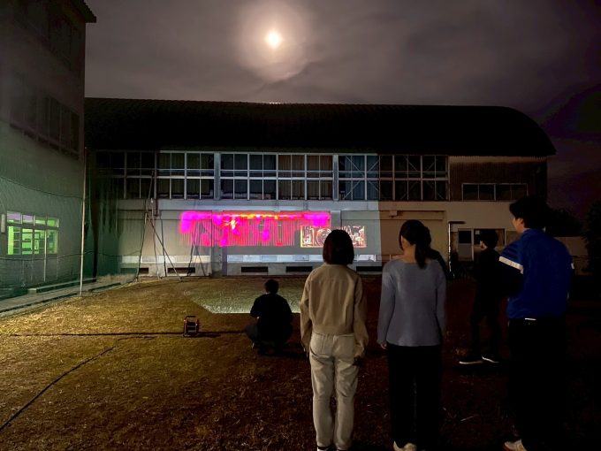 体育館の外壁にプロジェクションマッピングしてみたり、メンバーが持ち寄ったプラネタリウムを色んな部屋で試したり、夜の校舎探険のコースを実際に歩いてみたり、楽しみながらリハーサルしてきました!